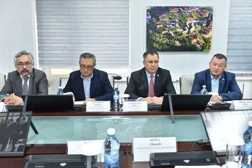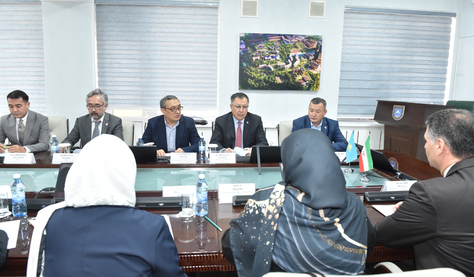 Музеймен танысудан кейін өткен ресми кездесуде Жансейіт Түймебаев қонақтарға жылы лебіз білдіріп, ҚазҰУ-дың қазіргі жетістіктеріне тоқталды. Оның айтуынша, университет QS рейтингі бойынша Қазақстанда бірінші, ТМД елдері ішінде екінші, ал әлемдік рейтингте 166-орында тұр. Ректор ҚазҰУ мен Иран арасындағы ынтымақтастық жақсы деңгейде екенін атап өтті. Университеттің шетелдік жоғары оқу орындарымен тығыз байланысы бар: бүгінде Қытай және Мәскеу ядролық университеттерінің филиалдары ҚазҰУ базасында жұмыс істейді. Және ҚазҰУ филиалдары басқа елдерде де бар екенін айтты. Сондай-ақ университетте 7000-ға жуық шетелдік студент білім алады, олардың 15-і Ираннан келген. Университет қабырғасында жұмыс істейтін Ирантану орталығының басты мақсаты – екі ел арасындағы ғылыми және мәдени байланыстарды тереңдету.