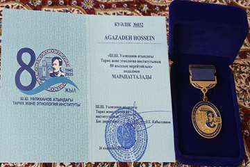 Ш.Ш. Уәлиханов атындағы Тарих және этнология институты өз кезегінде Хұсейн Ағазаде мырзаны ғылым мен ынтымақтастық жолындағы еңбегі үшін арнайы « Ш.Ш. Уәлиханов атындағы Тарих және этнология институтының 80 жылдық мерейтойлық төсбелгісімен» марапаттап, сыйлы қонақ ретінде қазақтың дәстүрлі құрмет нышаны – шапан жапты.